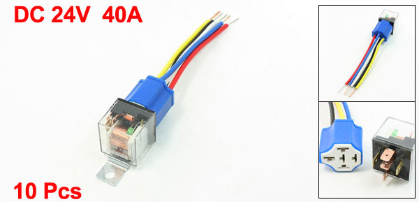10 Pcs 5 Wire Ceramic Socket Green Indicator SPDT Car Relay DC 24V 40A JD2914