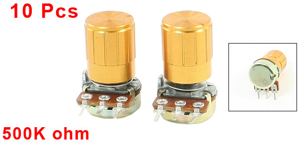 10 Pcs 500K ohm 3-Pin 6mm Split Shaft Rotary Linear Taper Potentiometers w Knob