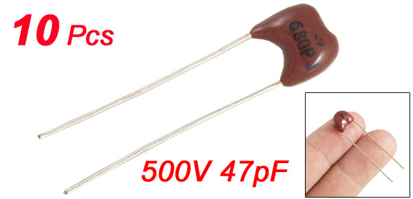 Product Name Mica Capacitor Dielectric Material Mica Capacitance 47pF Tolerance ±5% Withstand Voltage 500V Body Dimension 8 x 7 x 3mm/0.3" x 0.27" x 0.11"(W*H*T) Lead Length 30mm/1.18" Lead Pitch 6mm/0.24" Color As Picture Shown Net Weight 6g Package Content 10 x Mica Capacitors - Reviews