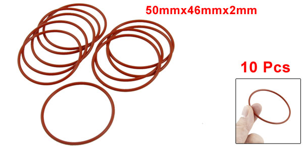 10 Pcs 50mm OD 2mm Thickness Red Silicone O Ring Oil Seals