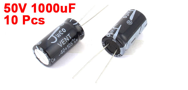 Product Name Electrolytic Capacitor Type Radial Lead Temperature -40 to +105C Voltage Rated 50V Capacitance 1000uF Tolerance +/-20% Body Size 13 x 25mm / 0.5"x 1" (D*L) Lead Dia 0.6mm/0.02" Dielectric Material Aluminum Weight 44g Color Black Package Content 10 Pcs x Electrolytic Capacitor - Reviews