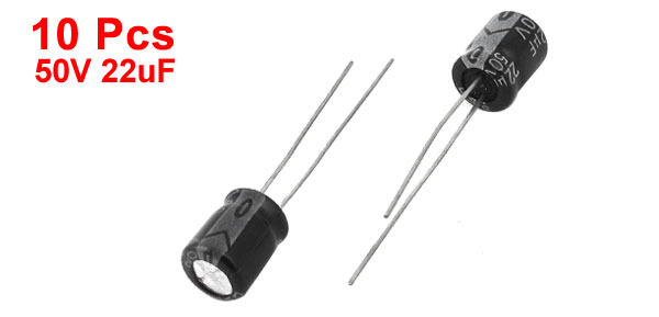 Product Name Electrolytic Capacitor Type Radial Lead Temperature -40 to +105C Voltage Rated 50V Capacitance 22uF Tolerance +/-20% Body Size 6 x 8mm / 0.24"x 0.31" (D*L) Lead Dia 0.6mm/0.02" Dielectric Material Aluminum Weight 6g Color Black Package Content 10 Pcs x Electrolytic Capacitor - Reviews