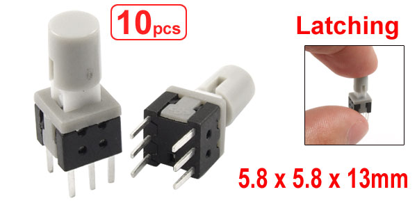 10 Pcs 5.8 x 5.8 x 13mm Round Cap Latching Tact Tactile Push Button Switch