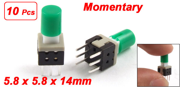 Pin Size 4 x 0.5mm/ 0.15" x 0.01"(L*W) Material Plastic, Metal, Electric Parts Color Green Net Weight 4g Package Content 10 x Tact Switches - Reviews