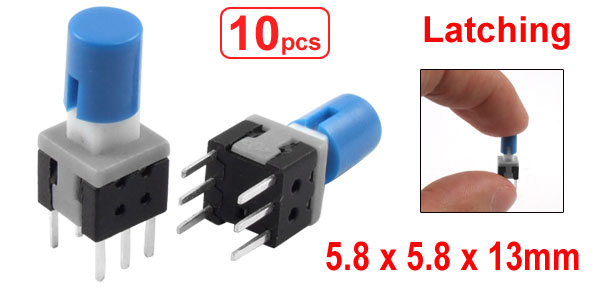 10 Pcs 5.8x5.8x13mm Latching Self Lock Tact Tactile Push Button Switch 6P w Cap