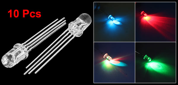 10 Pcs 5mm Common Anode 4pin RGB Red Green Blue Light Emitting Diode LED