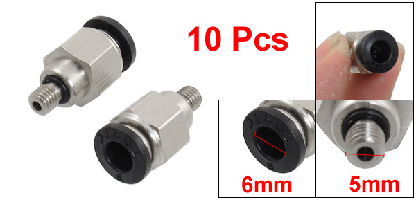 10 Pcs 5mm Male Thread 6mm Push In Joint Pneumatic Connector Quick Fittings