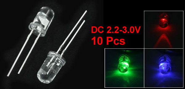 10 Pcs 5mm Round Head 2 Pin Colorful LED Light Emitting Diodes DC2.2-3.0V