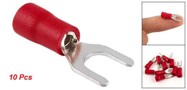 10 Pcs 5mm Tip Width Fork Insulating Terminal for 3mm Dia Bolt