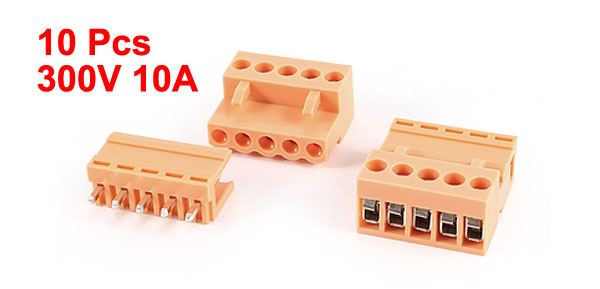 10 Pcs 5Pin 3.96mm Pitch PCB Mount Screw Terminal Block 300V 10A AWG14-26 Orange