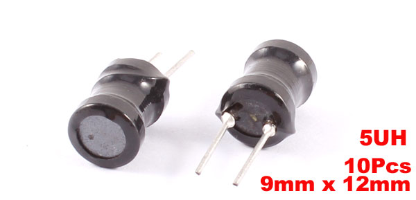 Product Name Inductor Material UL-polyolefin, Metal Inductance 5MH Body Size 9 x 12mm / 0.35" x 0.47"(D*H) Lead Distance 4mm / 0.157" Color Black, Silver Tone Weight 40g Package Content 10 x Inductors - Reviews