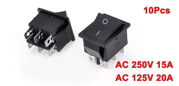 10 Pcs 6 Pins 2 Position I/O Boat Rocker Switch 250V/15A 125V/20A AC