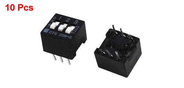 Product Name DIP Switch Working Voltage & Current DC 12V 50mA Pin Pitch 2.54mm Type Slide Type Pin Number 6 Position Number 3 Total Size(Not Include Pin) 9.8 x 9.6 x 7mm/ 0.39" x 0.38" x 0.28" (L*W*H) Material Electric Part, Plastic Color Black Weight 10g Package Content 10 x Dip Switch - Reviews