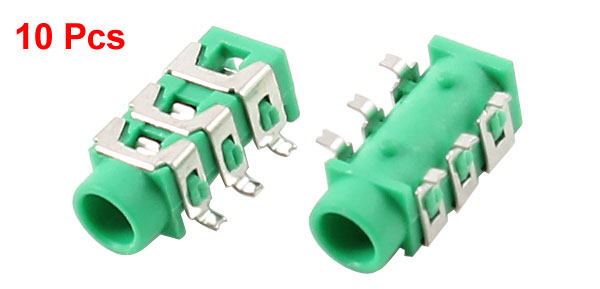 10 Pcs 6 Pins 3.5mm SMD Stereo Headphone Socket PCB Mount Connector Green