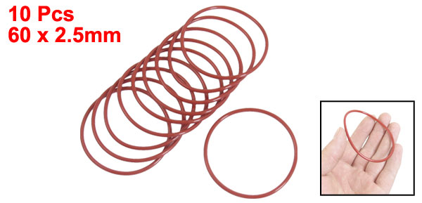 10 Pcs 60 x 2.5mm Mechanical Rubber O Ring Oil Seal Gaskets Red