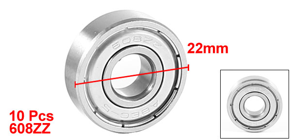 Product Name Deep Groove Ball Bearing Model 608ZZ Materal Metal Outer Diameter 22mm/ 0.8" Inner Diameter 8mm/ 0.3" Width 7mm/ 0.26" Main Color Silver Tone Weight 110g Package Content 10 x Deep Groove Ball Bearing - Reviews
