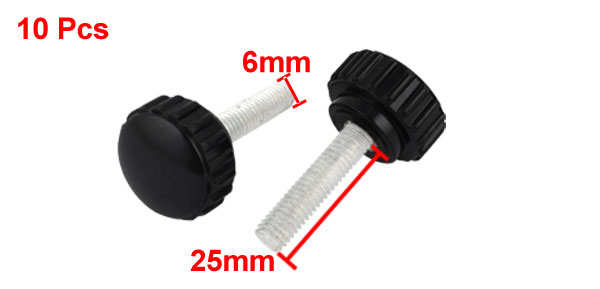 10 PCS 6mm Dia 25mm Length Male Threaded Screw On Type Grip Clamping Knob