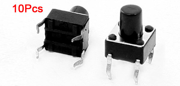 Details10 Pcs 6x6x7.5mm 4 Pins DIP PCB Momentary Tactile Tact Push Button Switch  Product Name Tact Switch Action Type Momentary Total Size(Pin No Include) 6 x 6 x 7.5mm/0.24" x 0.24" x 0.3"(L*W*T) Button Diameter 3mm/0.1" Material Plastic, Metal Color Black Net Weight 3g Package Content 10 x Tact Switches