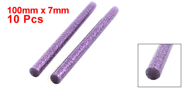 10 Pcs 7mm Dia Dark Purple Glitter Hot Melt Glue Adhesive Stick 100mm Length