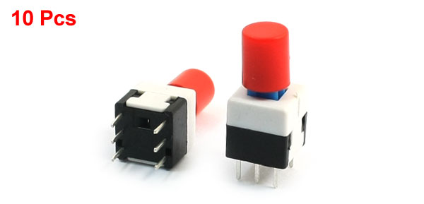 10 Pcs 8 x 8 x 17mm Round Cap Panel Latching Push Button Tact Switch