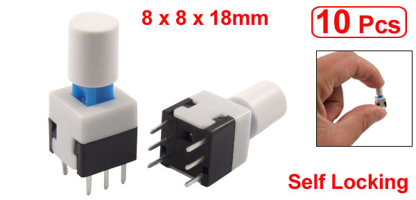 10 Pcs 8 x 8mm x 18mm Latching Tactile Push Button Switch Self Lock 6 Pin w Cap
