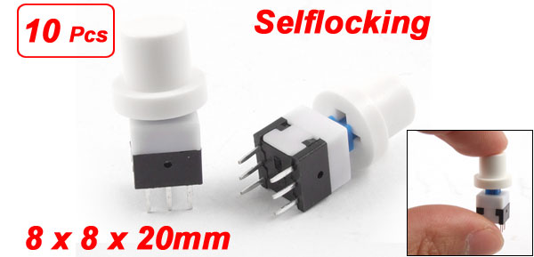 10 Pcs 8 x 8mm x 20mm Latching Tact Tactile Push Button Switch Self Lock w Cap