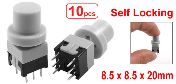 10 Pcs 8.5 x 8.5mm x 20mm Tactile Tact Push Button Switch Self Lock 6 Pin w Cap