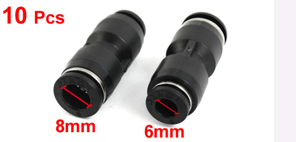 10 Pcs 8mm to 6mm One Touch Straight Pneumatic Quick Connectors Adapters Black