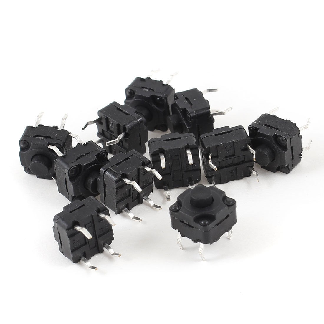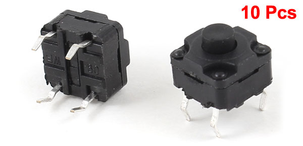 Details10 Pcs 8x8x8mm Round Push Button 4 Terminal DIP PCB Momentary Tact Switch  Product Name Tact Switch Action Type Momentary Total Size(Pin Not Include) 8 x 8 x 8mm/0.31" x 0.31" x 0.31"(L*W*T) Button Diameter 3mm/0.1" Material Plastic, Metal Color Black Net Weight 6g Package Content 10 x Tact Switches