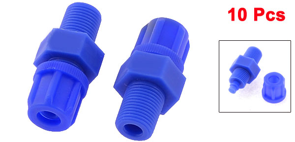 10 Pcs 9.7mm 3/8PT Thread Blue Plastic Air Pipe Connector Fitting BMC6-01