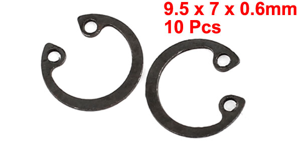 Product Name Retaining Ring Inner Dia 7mm/ 0.27" Outer Dia 9.5mm/ 0.37" Hole Dia 0.9mm/ 0.035" Thickness 0.6mm/ 0.024" Material Metal Color Black Weight 2g Package 10 Pcs x Retaining Ring - Reviews