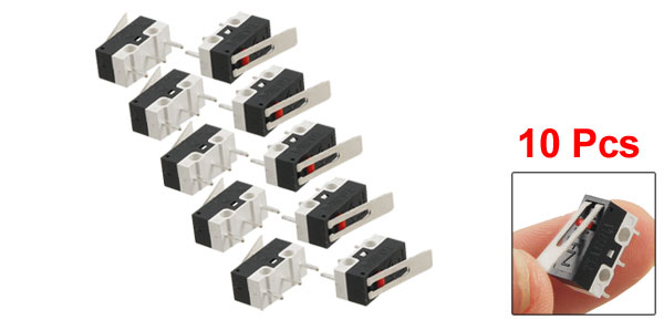 Product Name Micro Switch Poles SPDT Action Type Momentary Contact Type 1NO + 1NC Material Plastic, Metal Rated Load AC 1A 125V Lever Size (Approx.) 13 x 4mm/0.5" x 0.2"(L*W) Pin Width 0.7mm/0.03" Size (Approx.) 12 x 6 x 13mm/0.5" x 0.2" x 0.5"(L*W*T ) Color Black, White, Red Weight 6g Package Content 10 x Micro Switch - Reviews