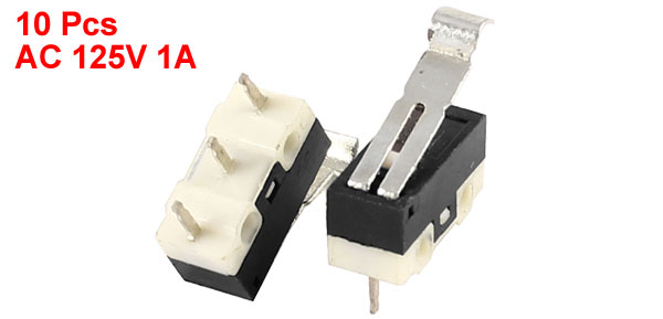 Product Name Micro Switch Actuator Type Short Lever Arm Actuator Action Momentary Contact Type SPDT 1 NO 1 NC 1 Com Terminal Type Plug-in Pins Rated Power AC 125V 1A Lever Length 17mm/0.67" Mounting Hole Dia 2mm / 0.08" Pin Distance 4mm(C---NO) 4mm(NO---NC) Body Size 13 x 10 x 1.6cm / 0.5" x 0.39" x 0.63"(L*W*H) Material Metal, Plastic Color Black Net Weight 6g Package Content 10 x Micro Switch - Reviews