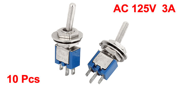 10 Pcs AC 125V 3A 3 Terminals On/ON Double Position SPDT Toggle Switch