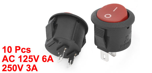 10 Pcs AC 125V 6A 250V 3A I/O Snap in SPST Round Boat Rocker Switch