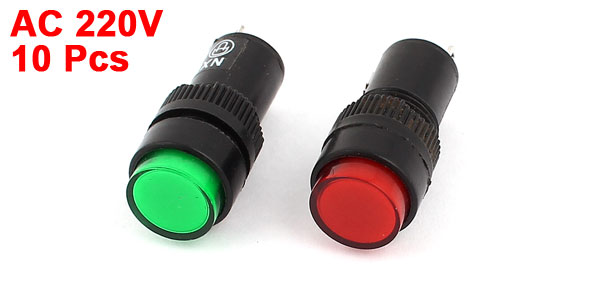 10 Pcs AC 220V 12mm Red Green Neon Indicator Light Pilot Signal Lamp