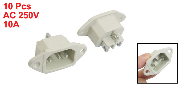 10 Pcs AC 250V 10A 3-Pin C14 Male Plug Power Inlet Socket Connector Gray