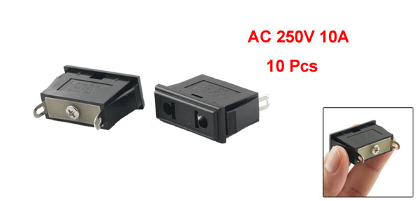 Product Name AC Power Socket Socket Type US EU 2 Pin Power Supply AC 250V 10A Pin Number 2 Top Square Face Size(Approx.) 35 x 14mm / 1.37" x 0.55" (L * W ) Mount Size(Approx.) 32 x 11 x 27mm / 1.25" x 0.43" x 1" (L * W * Depth) Material Plastic, Metal Color Black Weight 80g Package Content 10 x AC Power Socket - Reviews