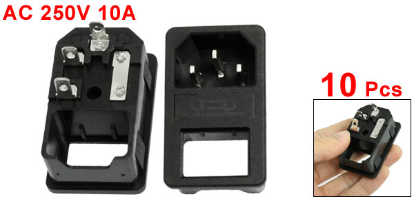 10 Pcs AC 250V 10A IEC 320 C14 3 Pin Clamp Type Power Inlet Socket