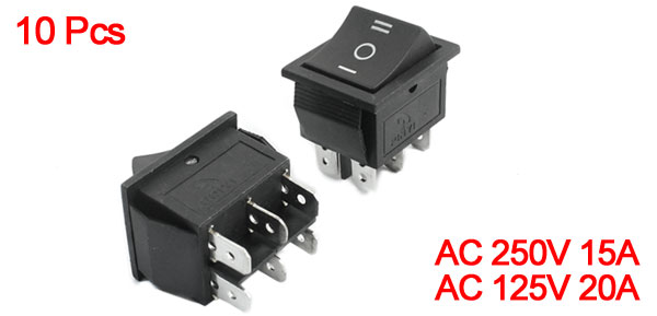 10 Pcs AC 250V 15A 125V 20A Black Button 6 Pin ON-OFF-ON DPDT Rocker Switches