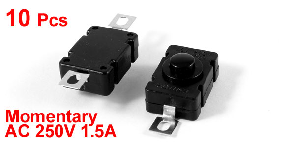 10 Pcs AC 250V 1.5A 2-Pin Horizontal Electric Torch Push Button Switch Black