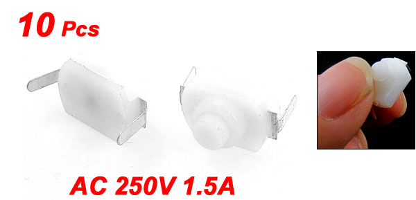10 Pcs AC 250V 1.5A Vertical 2 Pin White On Off Torch Push Button Switch