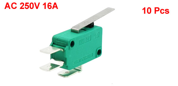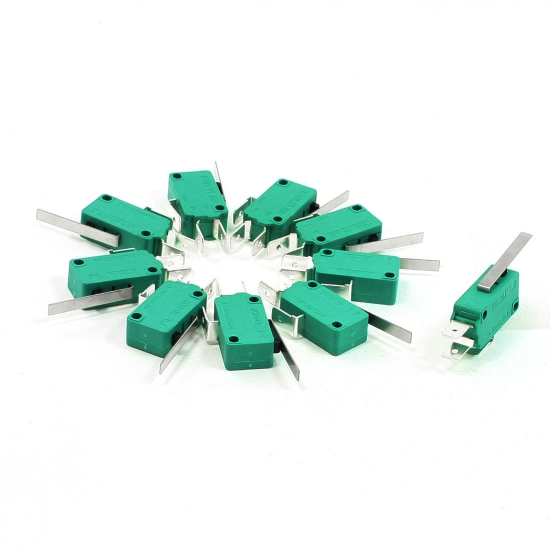 10 Pcs AC 250V 16A SPDT 3Pin Short Straight Hinge Lever Mini Micro Switch Green
