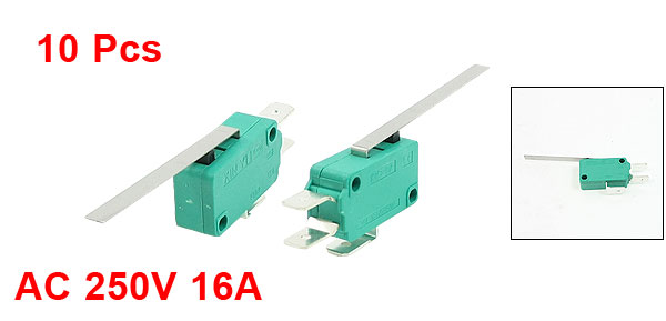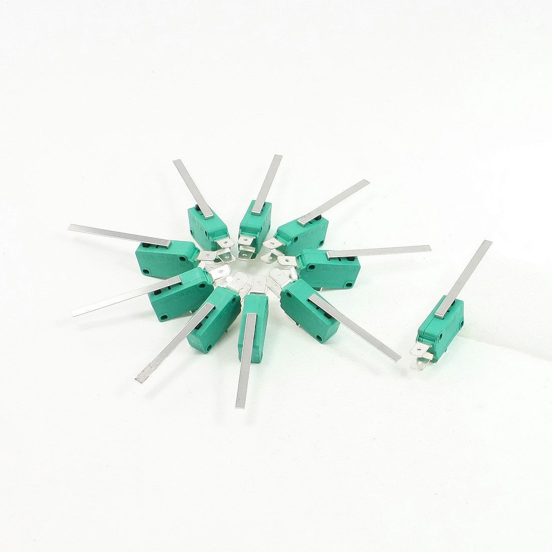 10 Pcs AC 250V 16A SPDT Long Straight Hinge Lever Miniature Micro Switch Green