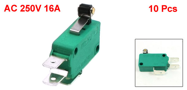 10 Pcs AC 250V 16A SPDT Short Hinge Roller Lever Miniature Micro Switch Green