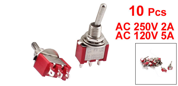 10 Pcs AC 250V/2A 120V/5A SPDT 2 Position ON/ON Toggle Switch Red