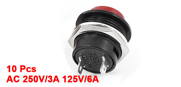 10 Pcs AC 250V/3A 125V/6A 2-Pin SPST Momentary Red Push Button Switch