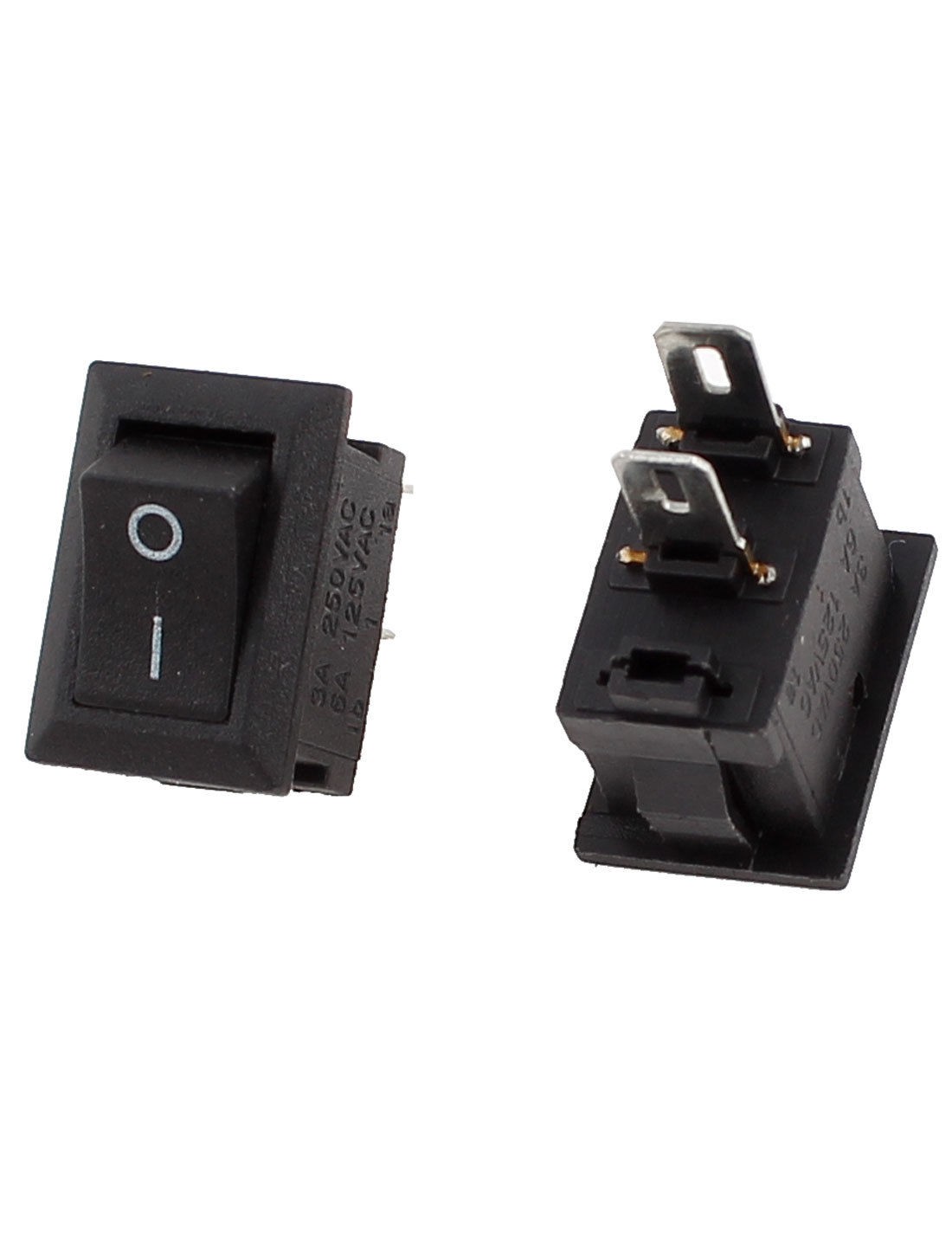Product Name Rocker Switch Material Plastic, Metal Type On Off, SPST Terminals Number 2 Rating Voltage AC 250V 3A /AC 125V 6A Total Size(Each) 1.5 x 1 x 1.8cm/ 0.6" x 0.4" x 0.7"(L*W*H) Mounted Size 8 x 8 x 16mm/ 0.3" x 0.3" x 0.63" (L*W*H) Color Black,Silver Tone Total Weight 15g Package Content 10 x Rocker Switches - Reviews