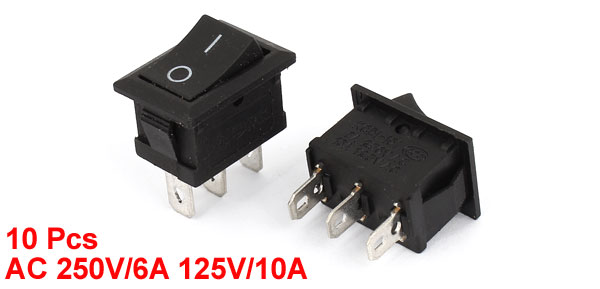 10 Pcs AC 250V/6A 125V/10A 3 Pins SPDT 2 Position On/Off Boat Rocker Switch