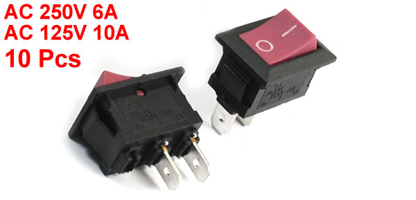 AC 125V 10ATotal Size 21 x 15 x 25 mm / 0.8" x 0.6" x 1"(L*W*H) Mounting Size 20 x 11mm / 0.8" x 0.4"(L*W) Pin Size 5 x 7 mm / 0.2" x 0.3" (W*H) Color Black, Red Material Plastic, Metal Total Weight 35g Package Content 10 x Rocker Switches - Reviews